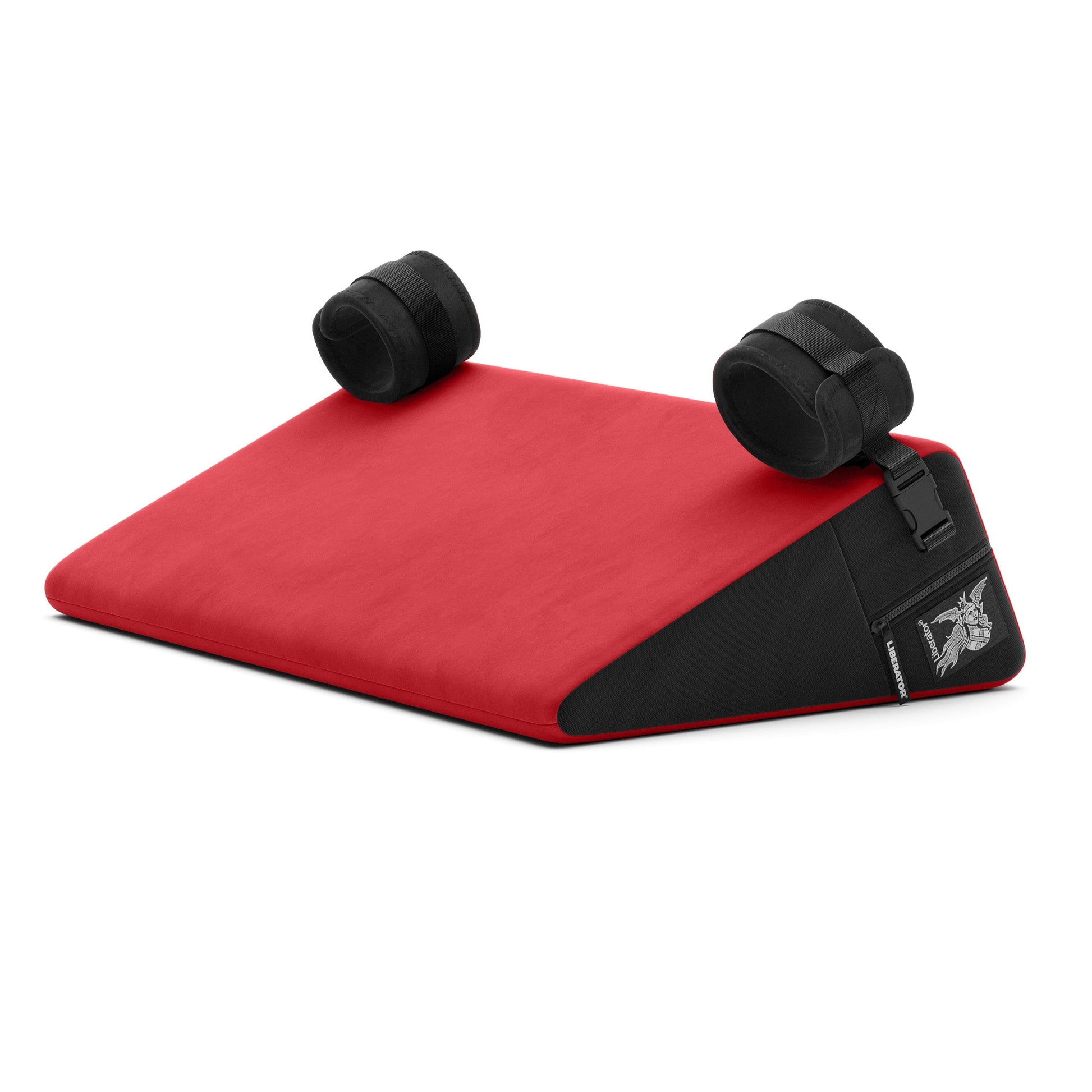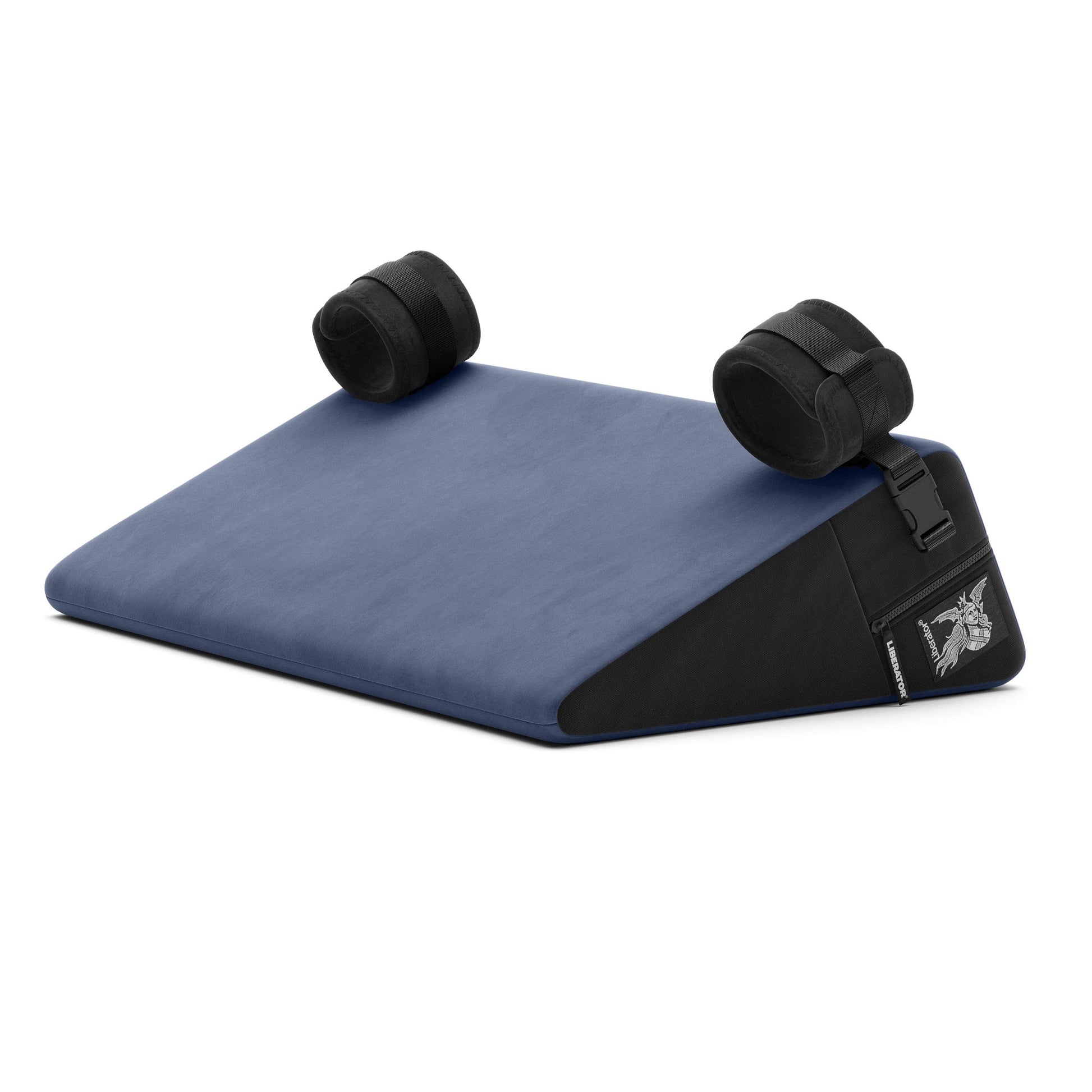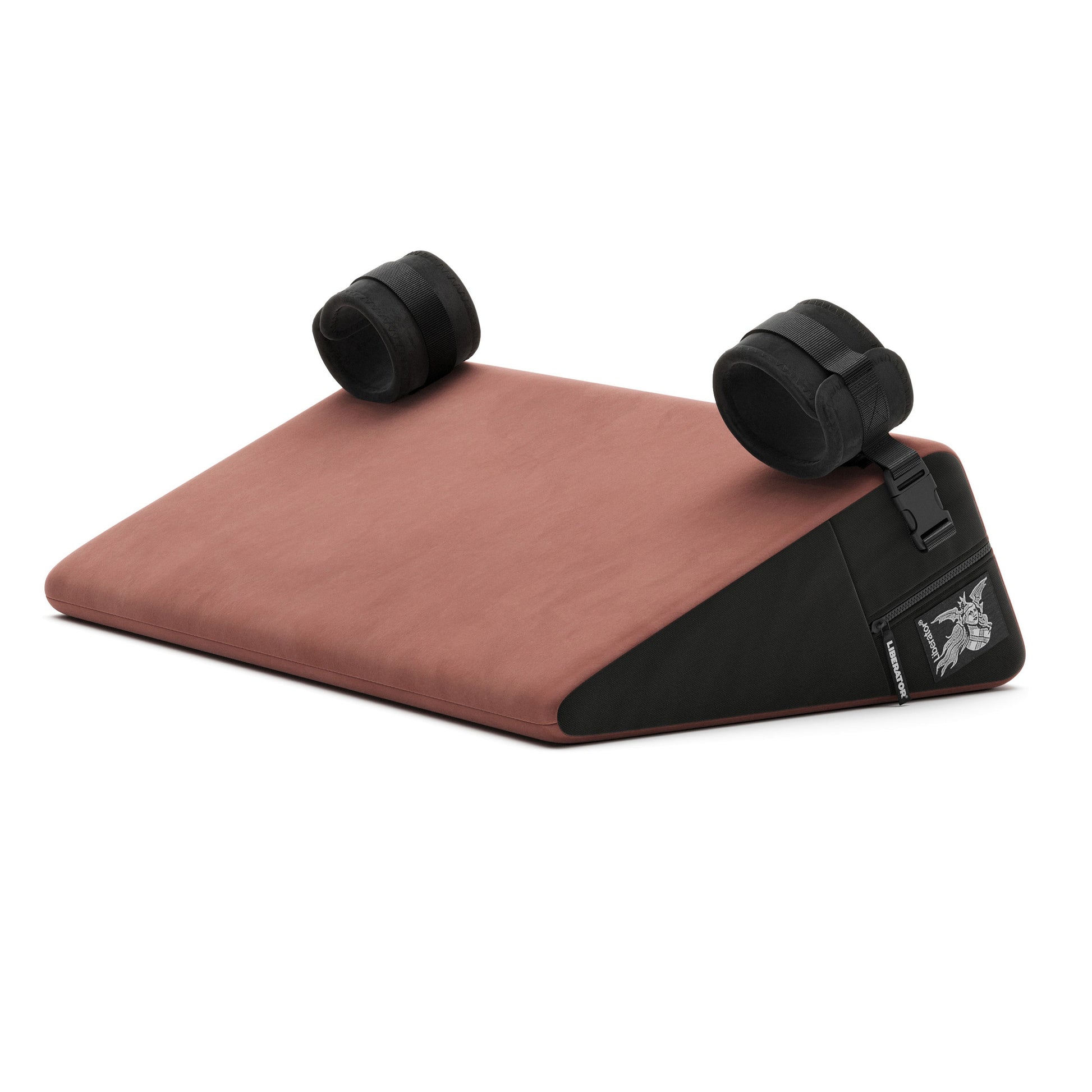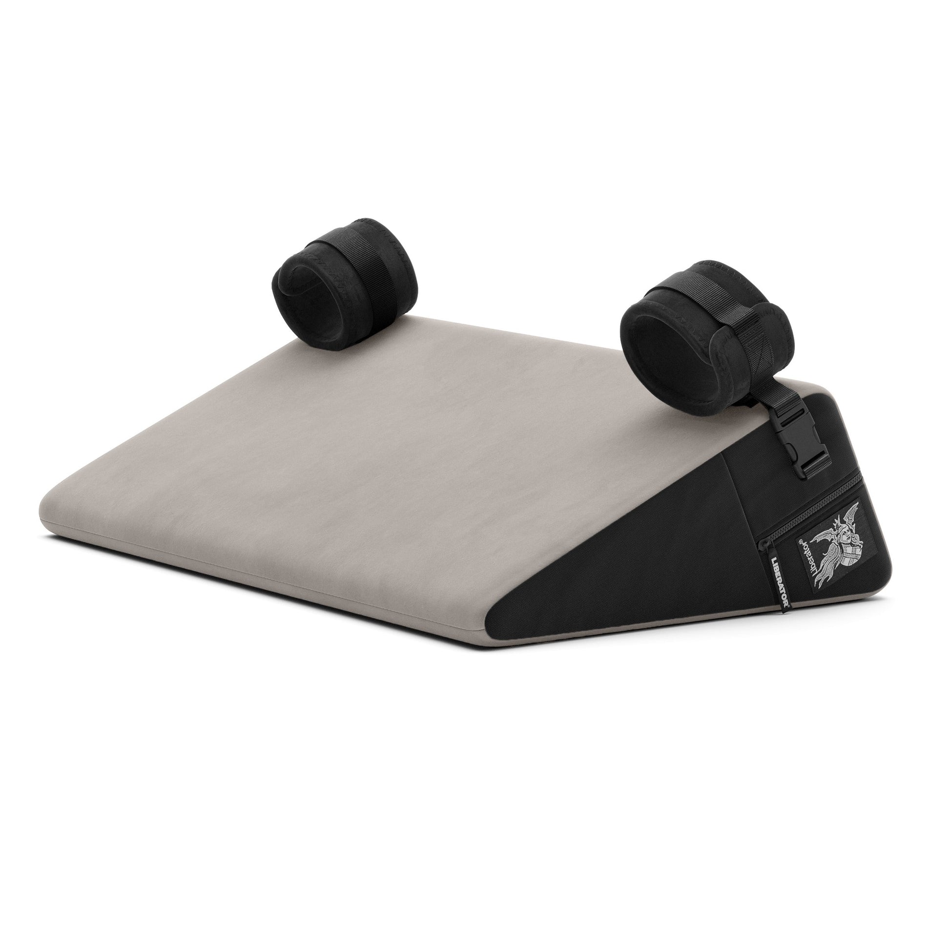 Compact and angled for oral, missionary, and doggy style. Lifts hips, relieves neck strain, and keeps play stable with cuff-ready restraint points. -