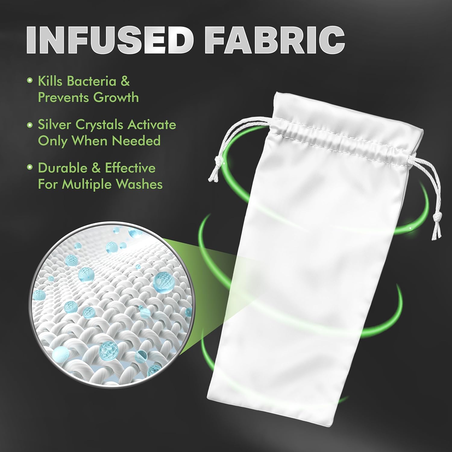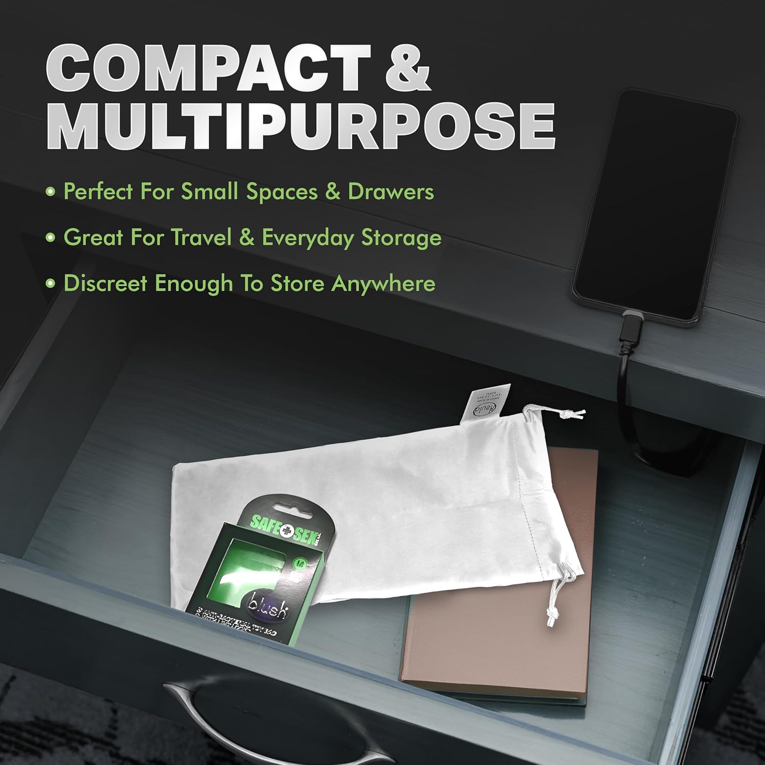 Keep your best friend safe with The Safe Sex lint free and safe toy bags. The features of The Safe Sex Toy Bags utilize the power of silver to bring long-lasting sanitary properties. This unique product contains ultra-fine silver crystals that release silver ions at a controlled rate only when the conditions for bacterial growth exist. The properties are durable for multiple washes, lasting the useful life of the toy bag. The special material is lint-free so your vibe does not get linty. The Safe Toy Bag is satiny smooth and comes with convenient drawstrings so you can cinch your bag shut.