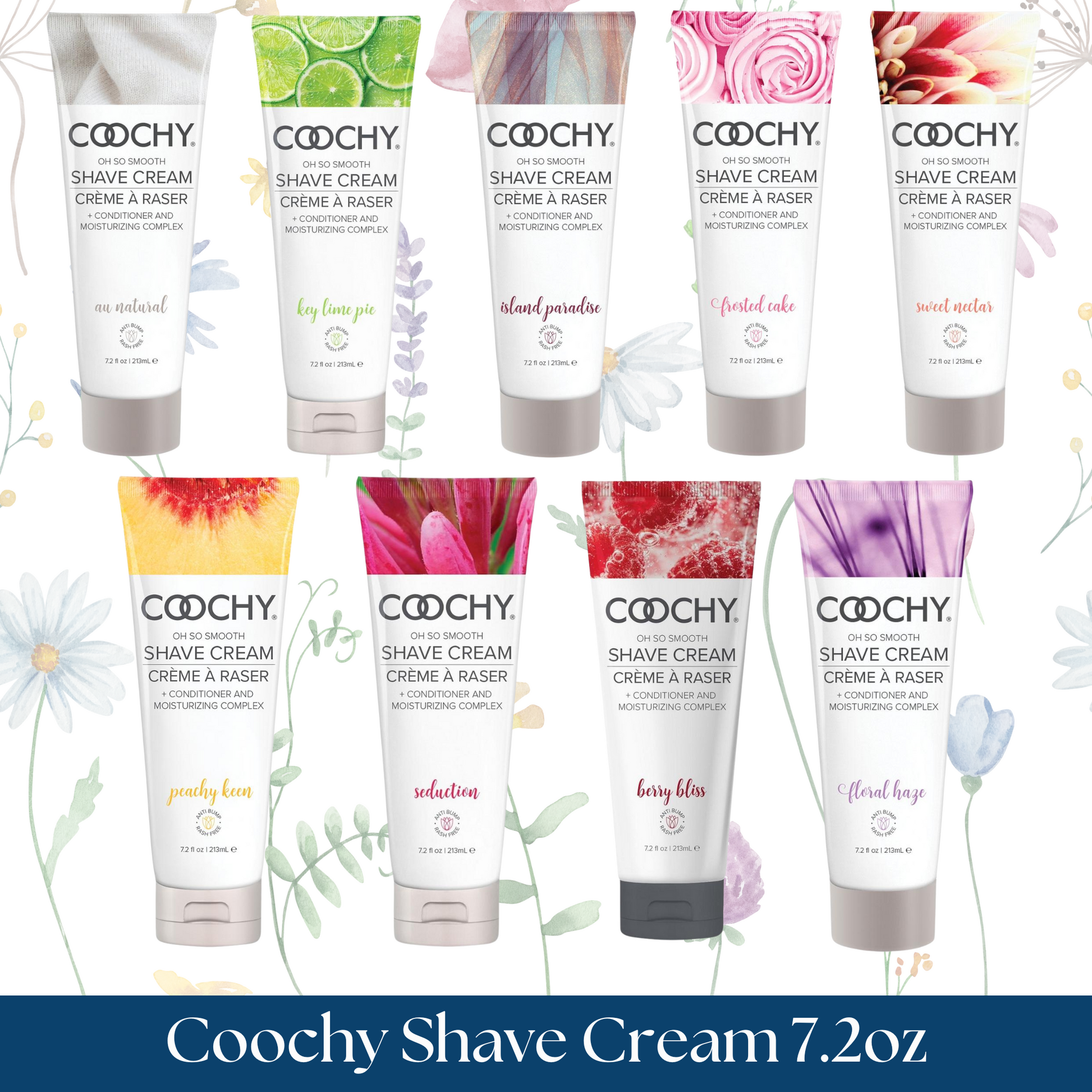 Coochy Shaving Cream is formulated with jojoba plus skin & hair conditioning agents for an extra smooth, rash-free shave every time. This unisex shaving cream softens the hair so your razor can cut it without pulling, leaving you with a clean, smooth, rash-free shave. It stops red bumps from appearing on the bikini area, underarms, legs, and any other shave-able area. Leaves skin oh so smooth and irresistible to touch! Finish your shave with Aftershave Mist to further prevent irritation and extend your shave.