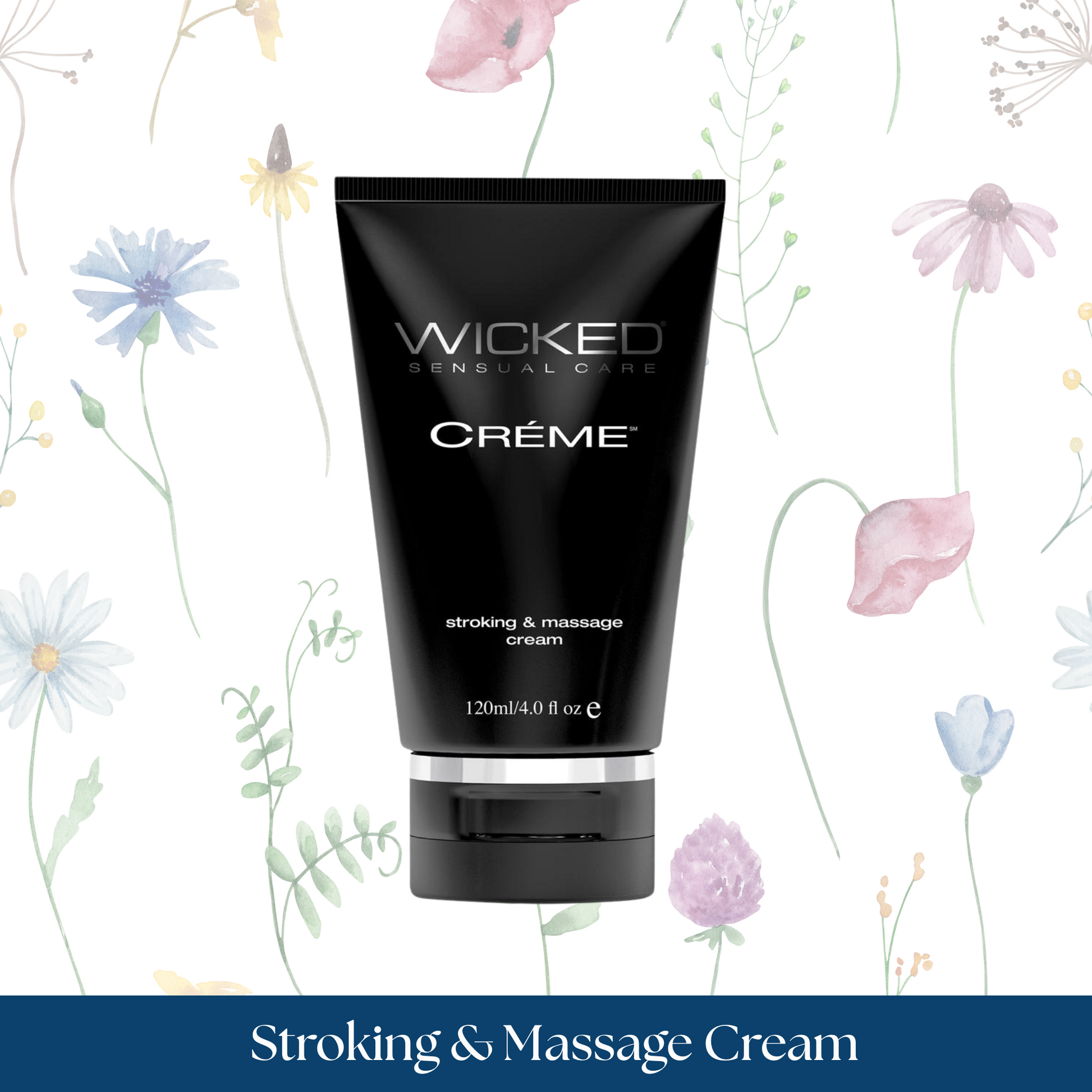 Pique your sensations and intensify your pleasure with Wicked Creme Stroking and Massage Creme. Use this skin-to-skin lubricant to enhance solo or partner play. This unique, coconut and sweet almond oil-based, intimate personal stroking and massage creme is perfect for intimate moments solo or with a partner. Experience the transformation as the fortified, nourishing cream melts with the warmth of your body into a non-greasy liquid. The superior glide of this Vitamin E enriched cream is sensually stimulating and will ensure unparalleled satisfaction. Do not use with toys.