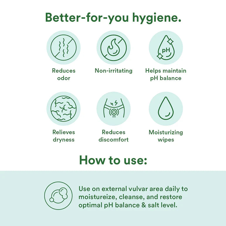 Use Balance Cleansing Wipes to cleanse, refresh, and eliminate odor on the go. Daily use may help restore optimal pH and salt balance. Not made with parabens, petrochemicals, or artificial fragrance. Please dispose; do not flush.