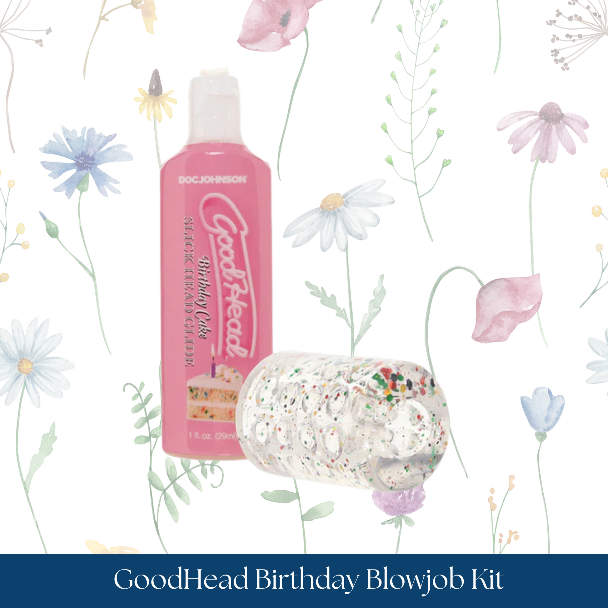 Finish their special day right! This Birthday Blowjob Kit is all you need to end a day of celebration. The Goodhead Helping Head Stroker is super soft on the outside with stimulating massage beads on the inside. It fits perfectly in your palm, and the UlTRASKYN is filled with confetti. Use it with the included Birthday Cake Slick Head Glide to give the best and tastiest blow job!