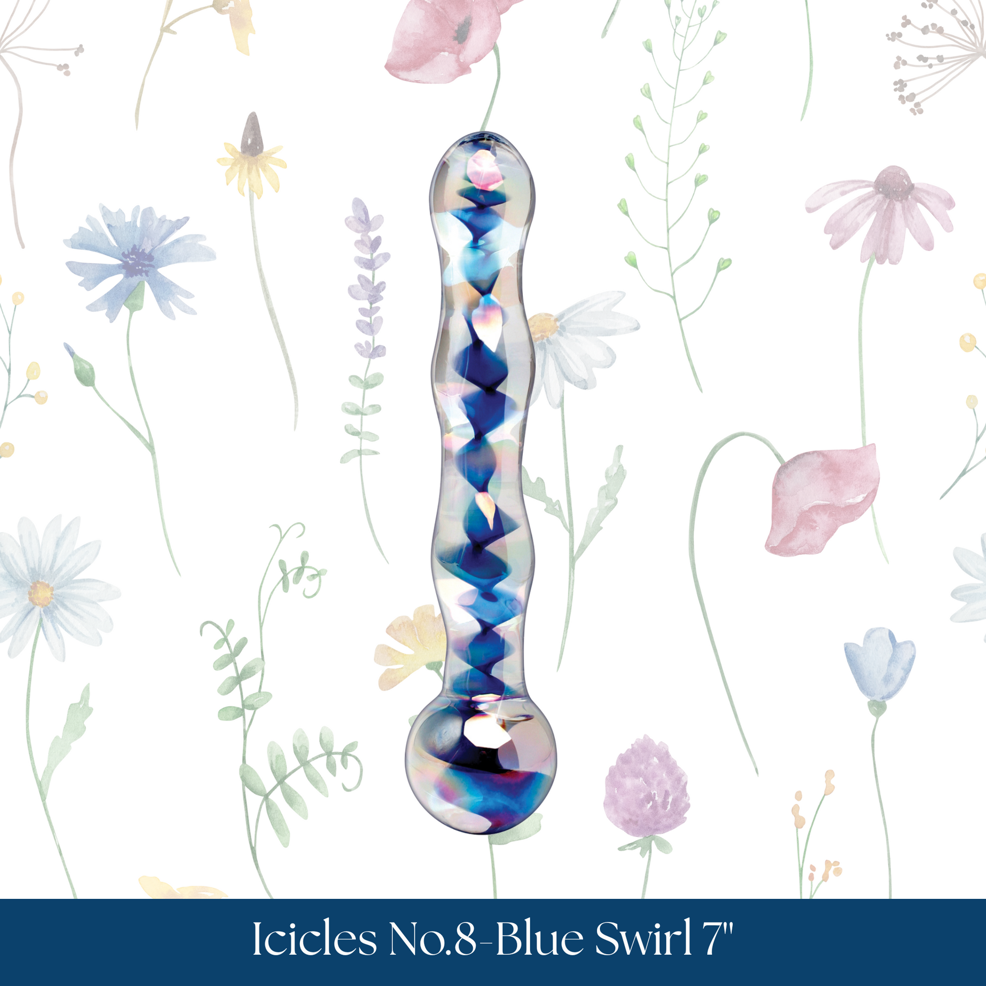 Elegant, upscale, and hand-crafted with amazing attention to detail, this luxurious line of glass massagers will leave you breathless. Each hand-blown Icicle glass wand is sleek, unique, and made to play hard. The hypoallergenic glass is nonporous and body safe, and when cared for properly, is designed to last a lifetime. Run the wand under warm water or place it in the microwave to heat things up. Chill it under cold water or put it in the freezer for a cool sensation. Overall length is 7" with a girth of 3".