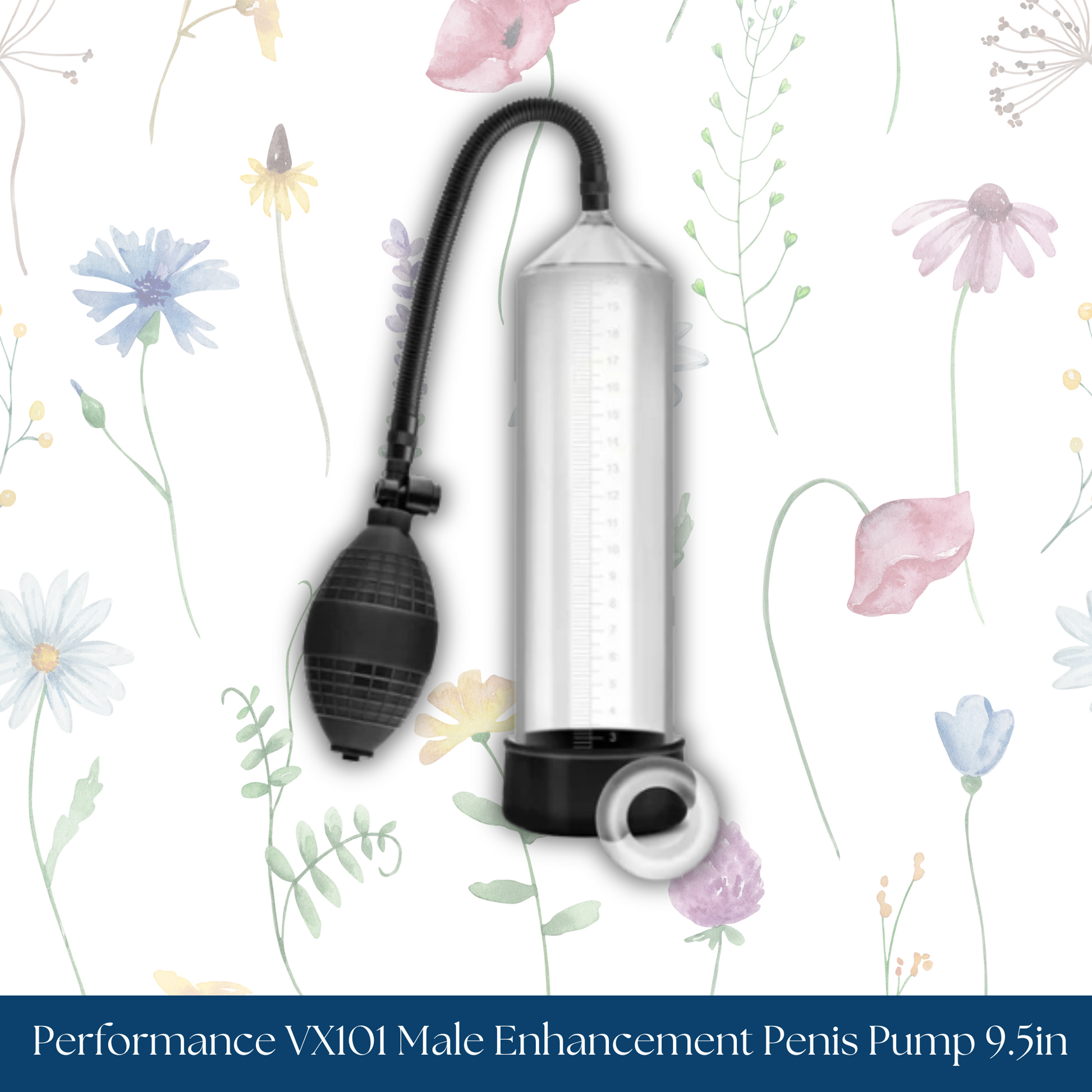 The Performance VX101 Pump is a beginner's pump made better. Featuring a durable rubber ball pump to generate maximum suction, a quick release valve, this pump is designed to guarantee your safety. It includes a soft cylinder seal for a comfortable feel and increased suction. The cylinder is made from impact-resistant plastics and is sized to fit most., this Performance Pump is easy to clean. It also comes with a Stay Hard Cock Ring to enhance your playtime. Most importantly, we have included a detailed instruction, how to manual so you can safely enjoy your new Performance Pump. Lab Tested Body Safe. Silicone, Water Based, Hybrid Lube Safe