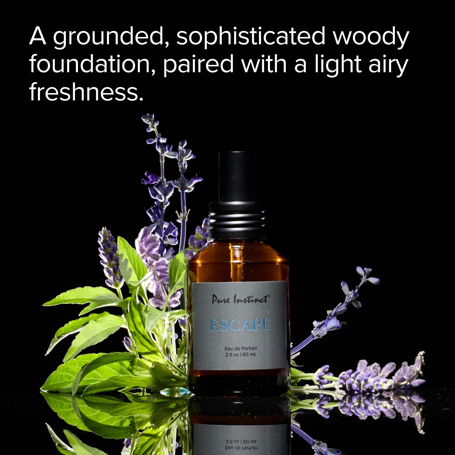 Escape: Seductive and mysterious, it opens with spicy black pepper and citrusy bergamot, unfolds into cypress and leather, and finishes with earthy vetiver, patchouli, and cedarwood.
