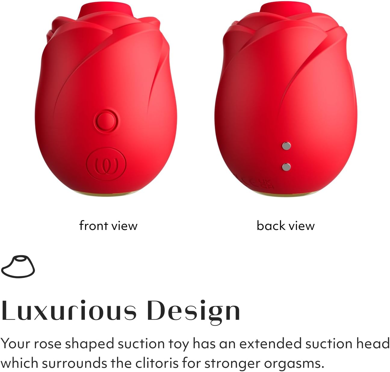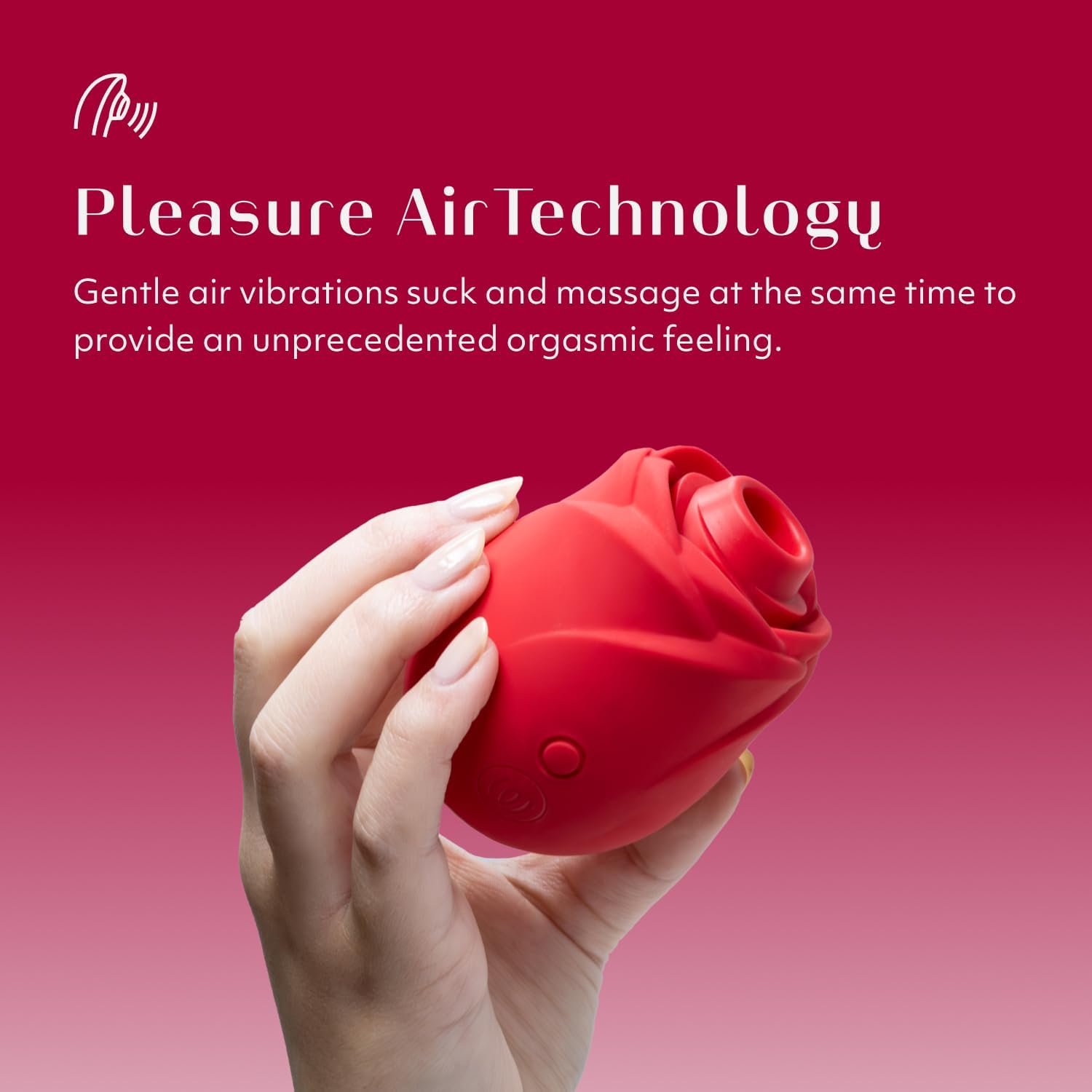Pleasure is in bloom with the Womanizer Pleasure Air Rose. This clitoral suction stimulator gives you an orgasmic sensation unlike anything you’ve ever felt. Featuring 6 intensity levels and 4 pattern modes, you can adjust the Rose's shifting waves of air pressure and suction for a customized, contactless massage. With a completely waterproof design and removable stimulation head, the Womanizer Pleasure Air Rose is the perfect companion for fun in the tub, and is super easy to clean.