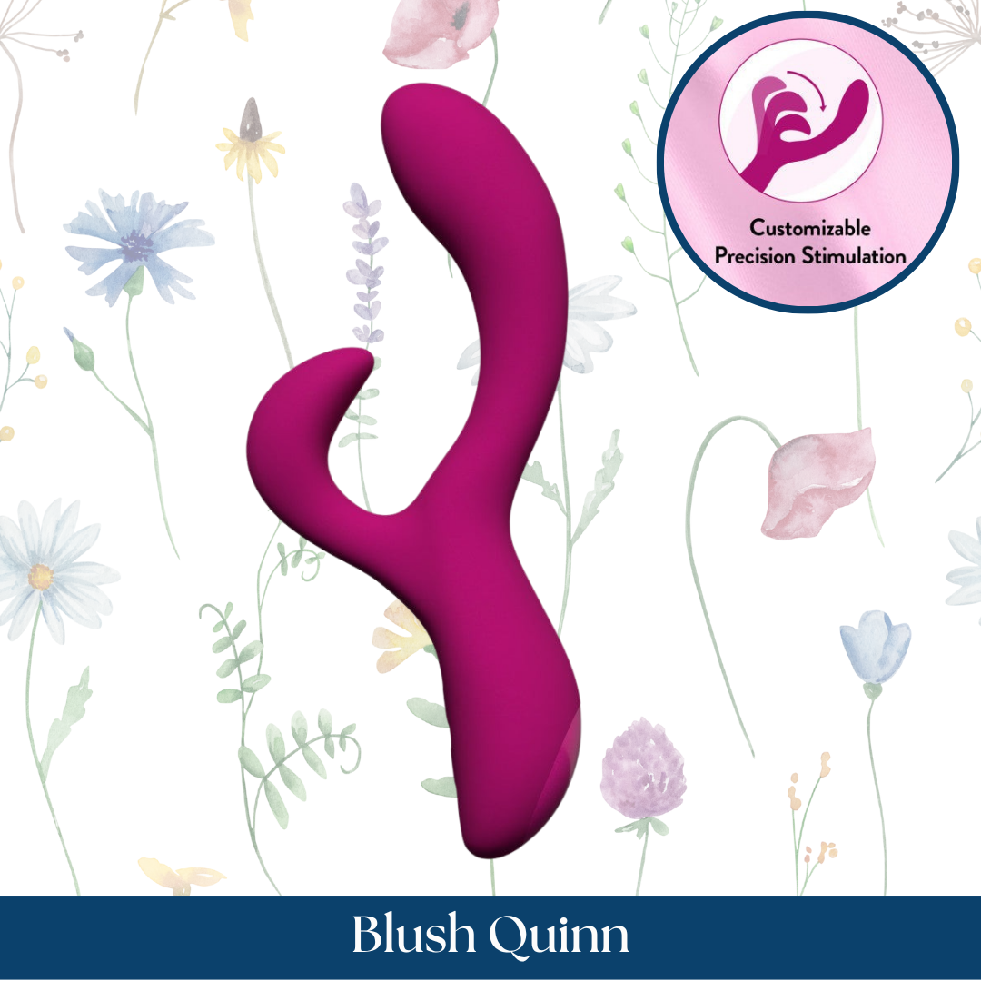 Meet Quinn — your ultimate indulgence in dual stimulation. This sleek, luxurious vibrator delivers precision clitoral pleasure and deep G-spot satisfaction with 10 RumboTech™ vibration modes, offering 5 speeds and 5 patterns. The auto-warming feature surrounds you in sensual heat, enhancing arousal and intensifying every touch. Crafted from body-safe Puria® Platinum Cured Silicone with an UltraSilk® satin finish, Quinn feels irresistibly soft. Waterproof (IPX7) and Magna Charge™ USB rechargeable, Quinn is the definition of elegant, powerful pleasure.