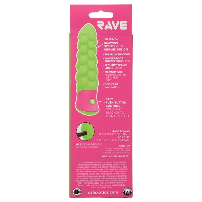 With 10 vibration speeds and a memory chip that resumes your last-used setting, the Rave Ripple lets you tailor your experience—from gentle ripples to intense tidal waves of pleasure. The travel lock ensures discreet storage, while USB rechargeable power offers up to 90 minutes on low or 40 minutes on high intensity. Sleek, versatile, and indulgently textured, the Rave Ripple transforms every encounter into a mesmerizing adventure.